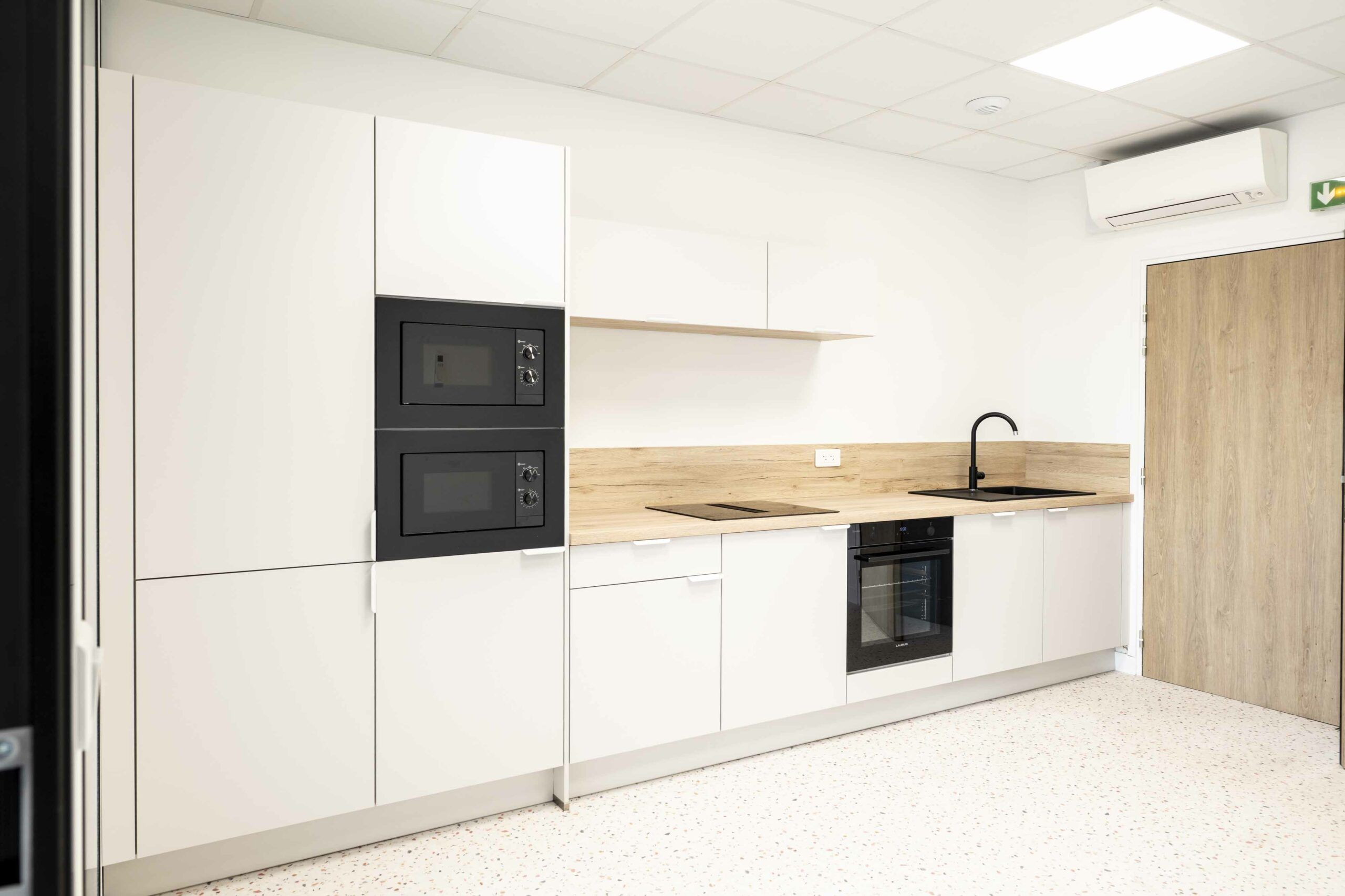 Avec une activité en pleine expansion, notre client avait besoin d’agrandir ses locaux et d’étoffer son équipe. Nous l’avons accompagné dans la réalisation de ses plans, le sourcing des matériaux adaptés et dans toute la réalisation des travaux. De la réflexion sur son activité à la création d’une douche et de vestiaires pour ses salariés en passant par l’agencement de sa cuisine, rien n’a été conçu au hasard.
