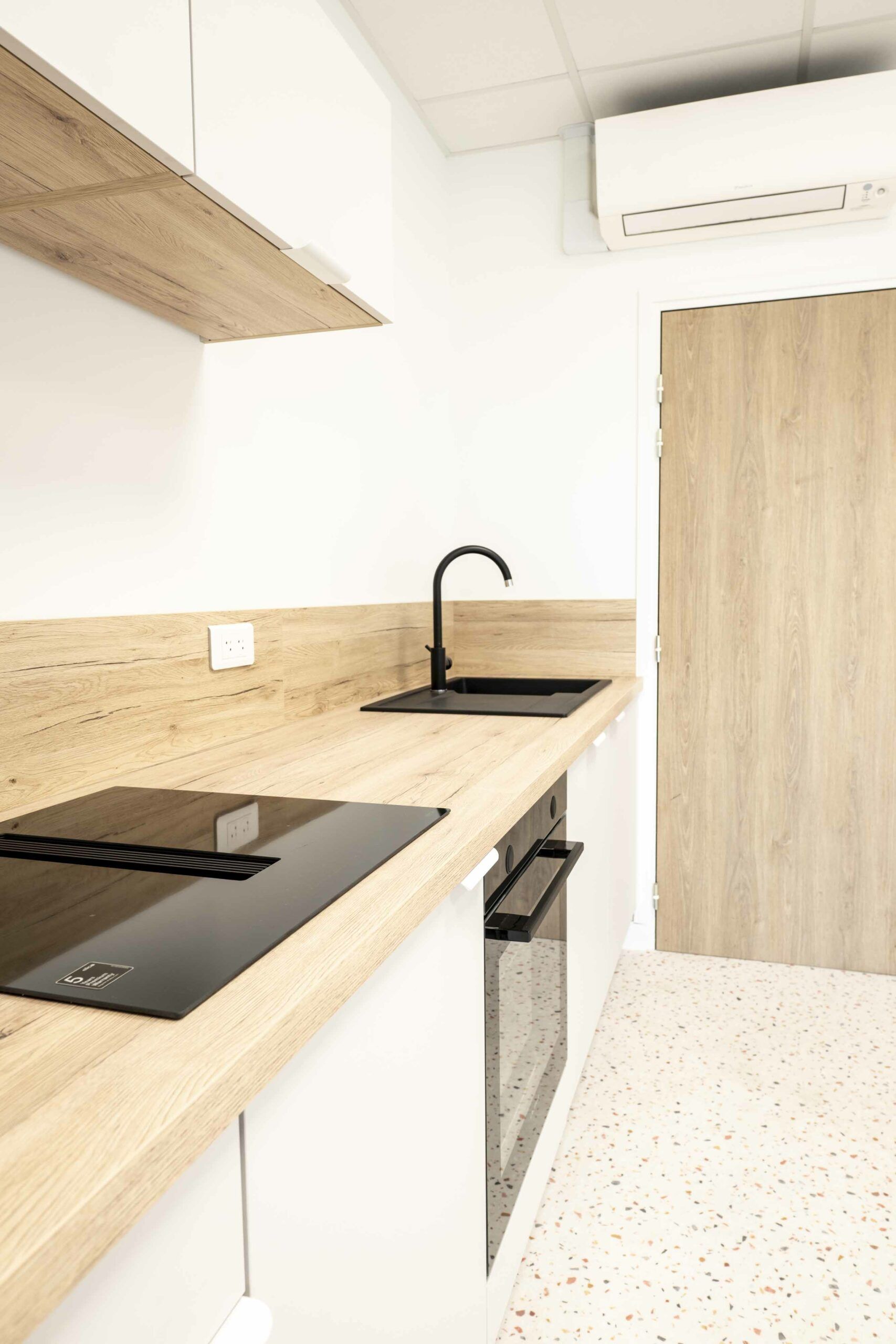 Au programme: space planning, démolition, climatisation, plomberie, courant fort, courant faible, cloisonnement, faux-plafonds, carrelage, faïence, sol PVC, peintures, cuisine et électroménager.