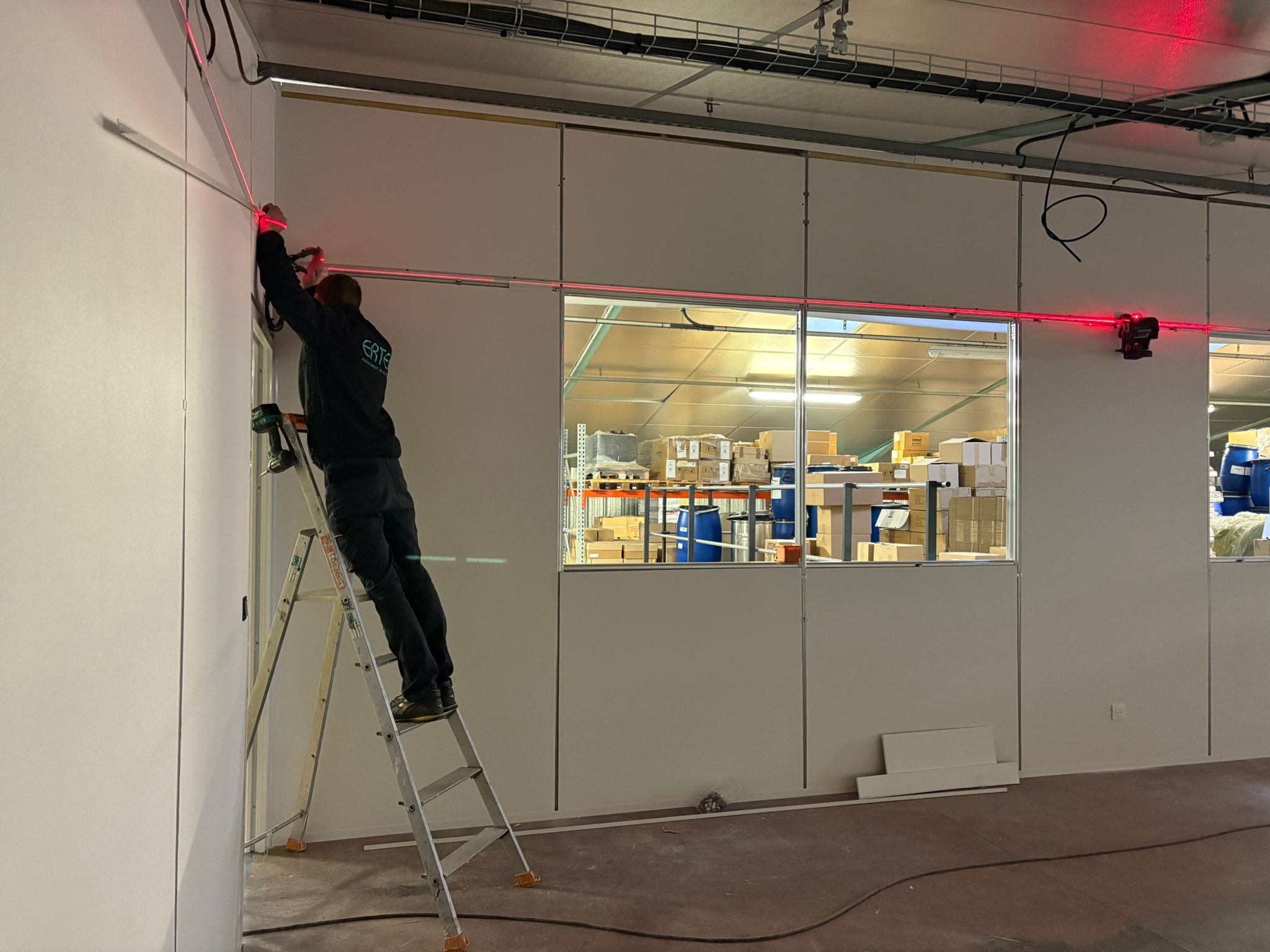 De la création du faux-plafond à la pose des revêtements de sol en passant par le cloisonnement et l’électricité, notre chef de projet qui a tout coordonné depuis le début en co-construction avec notre client, de la découverte du projet à sa réalisation, a tout mis en œuvre pour que le chantier dure moins de 4 semaines, comme l’exigeait notre client.