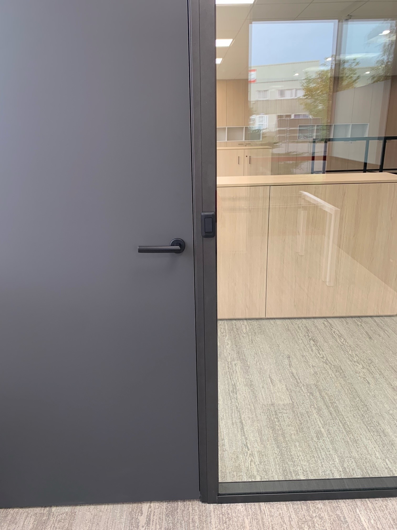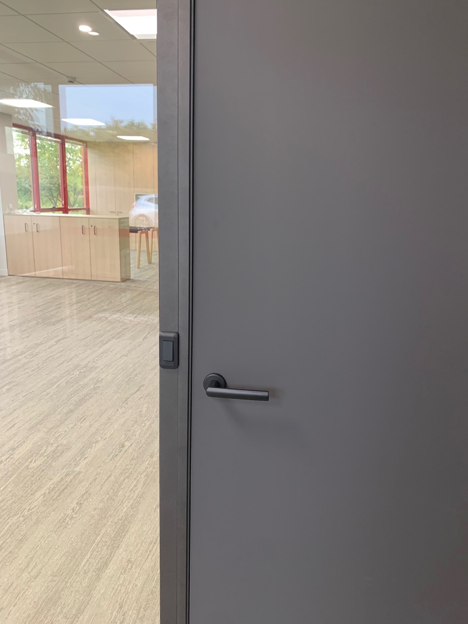 L’allumage des luminaires dans les bureaux se fait grâce à un interrupteur installé discrètement sur le montant des portes.